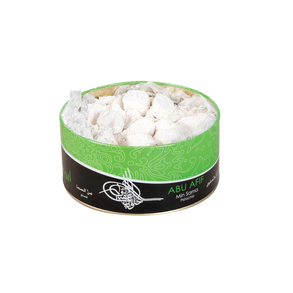 Ingredients: Pure Min Al Sima (Manna), Glucose, Cardamom, Sugar, Egg Albumen, Pistachio.